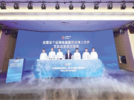 山東樁基固定式海上光伏實證項目成果發(fā)布現(xiàn)場。